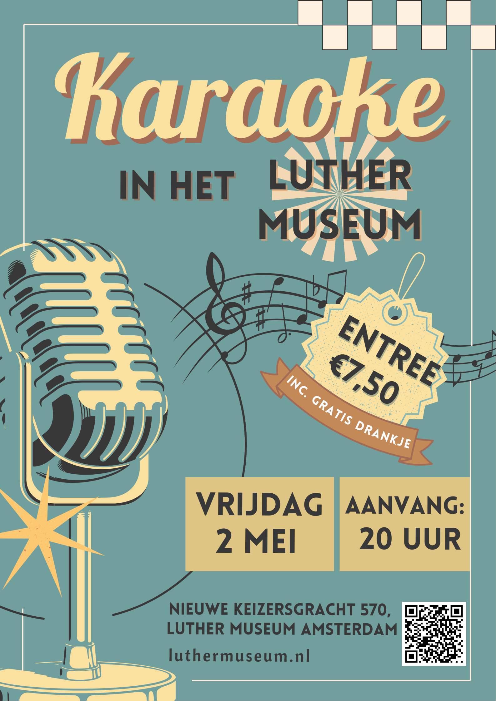 Schrijf de datum alvast in je agenda: vrijdagavond 2 mei in het Luther Museum vanaf 20:00 uur. Als eindtijd staat nu 22:30, maar we zien wel hoe lang we door willen gaan met hitjes zingen! De tijd vliegt als je gezellig samen (karaoke) zingt.